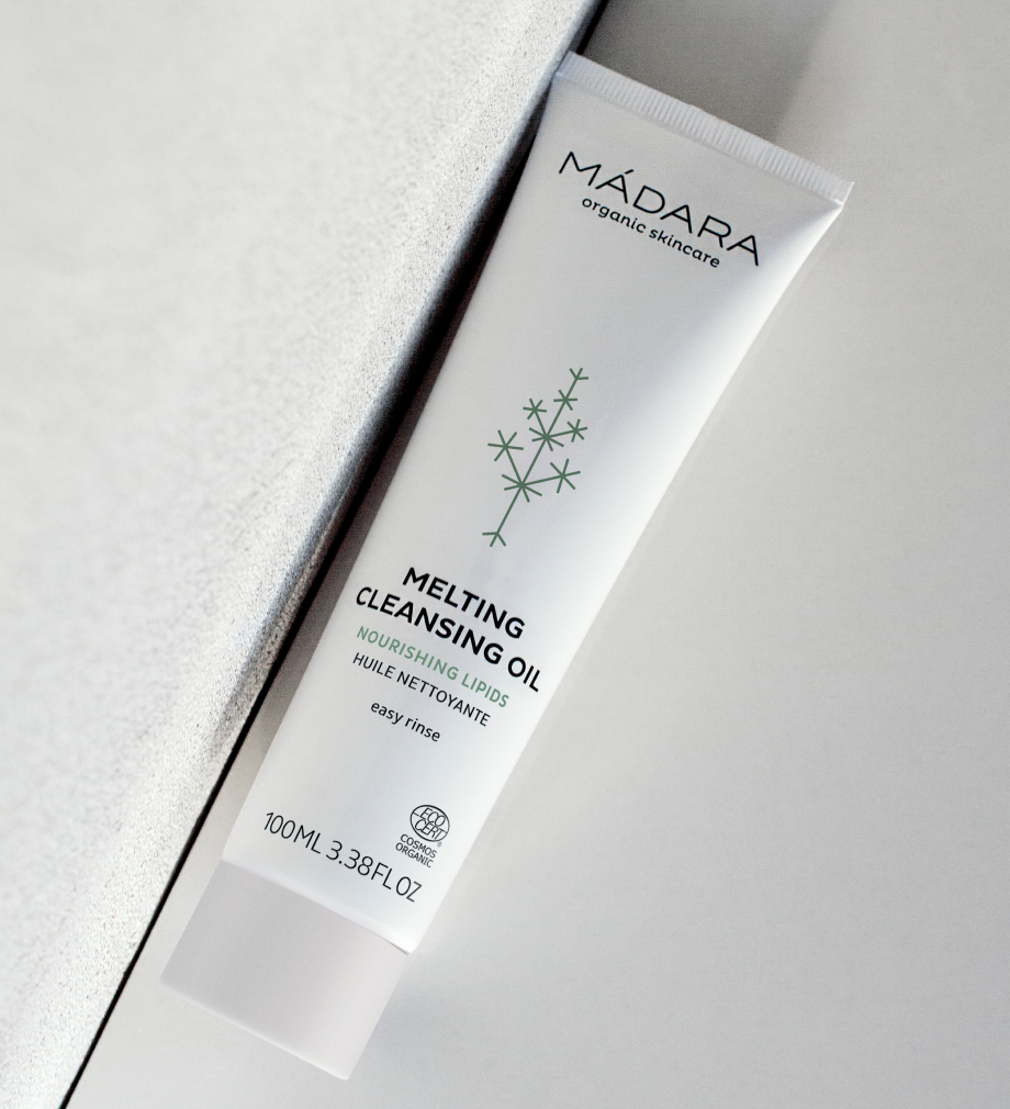 Before applying, take a small amount of your MÁDARA tinted mineral sunscreen in your hands and warm it between your fingers. The heat softens the texture, helping it to spread seamlessly.